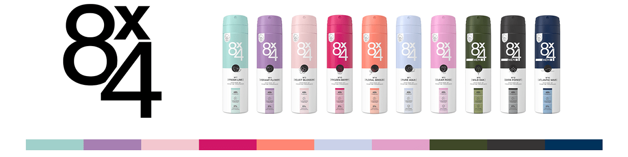 It all started with a deodorizing bath soap. That was in 1951. Today, with the 8X4 product line, Beiersdorf offers a combination of modern premium fragrances and powerful 48-hour deodorant protection for limitless freshness. The 8X4 range includes a variety of fragrances from floral-fruity to masculine-fresh. Click here to visit the 8X4 website (only available in German).